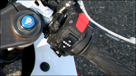 The GSX-R1000 also gets a new, electronically controlled hydraulic steering damper. That's right: the oil flow is proportional to the bike's speed. In other words, the faster you ride, the stiffer it gets -- another gadget that's more or less interesting. Before realizing that a cable was connected to the damper, I thought that my aggressive riding style (always to the limit!) was responsible for the system's odd reactions. Now that I know what's really going on, I thank my instincts and I question the pertinence of an all-electronic control.