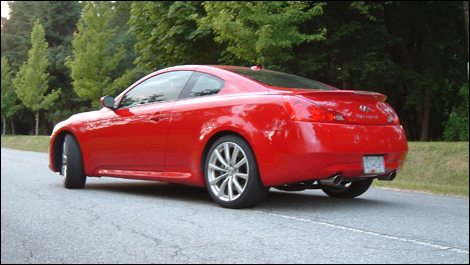 The feline handling dynamics do come at a non-negotiable price beyond mere dollars, and that's ride quality. The G37 Sport isn't punishing but it can become wearisome on bumpy roads when all one wants to do is Zen-drive.  | | This is a Japanese super-coupe that dispatches its immense authority to the rear wheels. | G37 Sport wrappedInfiniti has extensively refined their "G" sled for 2008. It now encompasses more punch both visually and under the hood. This is a Japanese super-coupe that dispatches its immense authority to the rear wheels, which I've always argued are the wheels of choice. The 2008 G37 pulls together outstanding levels of luxury, performance and style in a single package that loves to be driven, and listened to. Photo Credit : Rob Rothwell