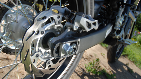 | Yamaha equipped its WR250X with a petal-shaped, 298-mm front disc and a 230-mm rear one. |