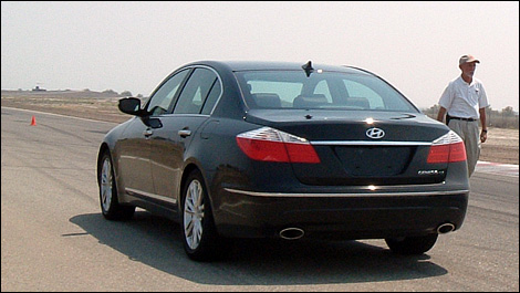 Due in part to its ideal 52/48-weight distribution, the V6 Genesis ate up the slalom and a variety of early and late apex turns with remarkable control and composure. This car exhibits such balance and predictability in the turns that it's almost difficult get completely out of shape, especially when the ESC is participating.