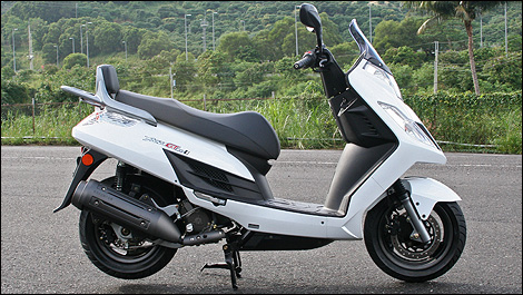 A cute new 200-cc scooter will make its debut this spring, the Frost 200i. I recently rode a pre-production model and found the fuel-injected, single-cylinder machine to be an effective performer. This machine seemed to be well suited for urban use by beginners and intermediate riders. The Kymco Frost 200i is attractive, as the designers managed to give it a very modern and trendy look, an attractive evolution from the classic and much loved Vespa style. The front fairing is particularly well executed and will be easy to customise with various appliqués and accessories.  | | Designers have given the Frost 200 a very modern and trendy look, while still leaving a hint of classic Vespa style. |