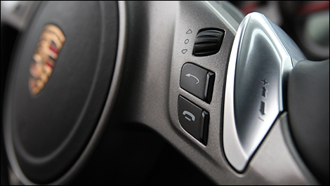 PDK sequential transmission. This all-new dual-clutch unit is similar to the ones found in various German cars. It's an outstanding performer for sure, even though the paddle shifters are actually big buttons on the main spoke of the steering wheel, right under your thumbs. For upshifting, you have to push the buttons, whereas for downshifting, you must pull them.