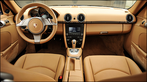What this all means is that the combo of more gears and more power make for a faster more enjoyable car to drive. The « base » Cayman is actually quite quick with a not-to-sixty sprint of 5.7 seconds. The beauty is that the transmission is so efficient at switching cogs that the car feels even faster. There is however, a downside: The controls for the box. You see, instead of calling upon the services of well know paddles behind the wheel or on the column, Porsche has decided to continue with the double-duty wheel-mounted buttons (pushing forward upshifts and pushing back does the opposite).