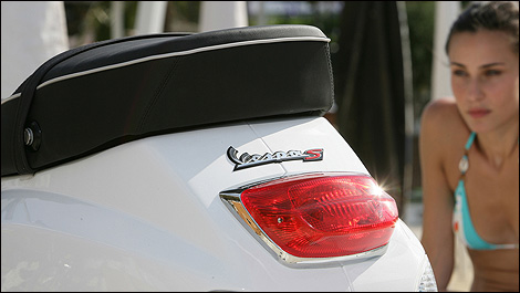 The finely sculpted firm seat offers a pleasant riding position, while taller riders cannot slide back on the seat and give themselves more room for their legs. A Vespa rep at the 2009 Montreal Motorcycle Show, when he spotted me on the little scooter, admitted that "With a Vespa, you become close friends with the handlebars!" Still, the S 50 would attract a larger number of consumers with more accommodating seats.