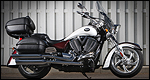 Fully faired luxury touring bikes suffer from one major shortcoming – they are big and heavy, especially when loaded and at lower speeds. This is where a standard cruiser with add-ons such as an effective windshield, deflectors for the lower legs, and various side and top cases, really shines. This is in fact the role played at Victory by the