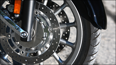 Easy to manoeuvre at low speeds – a tight U-turn with your feet on the pegs is no problem whatsoever – this baby always remains stable and obedient at highway cruising speeds. The generous ground clearance (over 150 mm), coupled with an 18-inch front wheel shod in a low-profile tire and a 17-inch rear wheel, ensure surprisingly agile handling and surprising cornering capabilities for such a considerable machine. It leans into corners effortlessly, and seems happy no matter what the angle.