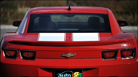 Our Camaro is also equipped with the Rally Sport Package that adds exclusive taillights, flangeless 20-inch alloys and xenon headlights. The optional white stripes curiously cover the hood and trunklid but not the roof, yet with the car’s red paint, the result is a car that draws a lot of attention. The Camaro’s edgy styling based on the original 1967 model is a work of art.