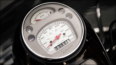 | More classic looks, and easy to read. Loved the fuel gauge and the clock just below this dial. (Photo: Matthieu Lambert/Moto123.com) |