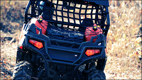 | The loading capacity is lower than that of more utilitarian side-by-sides but still allows you to carry a maximum of 136 kg in its medium-sized box. (Photo: Matthieu Lambert/Moto123.com) |