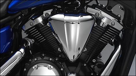 V-Star 1100, instead equipping the Stryker with its contemporary successor, already seen on the V-Star 1300. More sophisticated and powerful, the 1,304-cc, fuel-injected, liquid-cooled twin boasts four valves per cylinder as well as forged pistons and connecting rods, ensuring a more attractive weight-strength ratio. The engine produces some great sensations thanks to a crankshaft design where a single crank pin is used for both connecting rods, and counter balancer shafts that neutralize vibrations.
