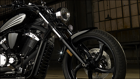 | 34 degree rake and short mudguards serves up the American chopper style. (Photo: Yamaha) |