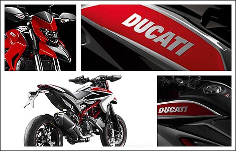 An all-new 821cc Hypermotard replaces the old 796 and 1100 models. No longer competing against its siblings, the Hypermotard takes on the rest of the world with a new Testastretta engine derived from the Streetfighter.