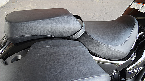 The suspension of the 2013 Suzuki Boulevard C90T, together with a beautifully shaped and padded seat, works effectively to provide adequate comfort during solo or two-up riding. (Photo: France Ouellet)