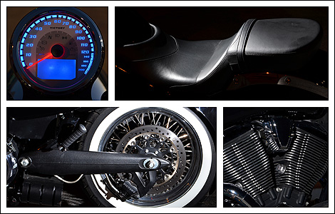 An ultra-low centre of gravity, long wheelbase, and 32-degree rake angle allow the 2013 Victory Boardwalk to handle like a middleweight despite tipping the scales at 307 kg. Easy to manoeuvre at low speeds (even at idle; actually), this machine feels like it weighs around 250 kg.