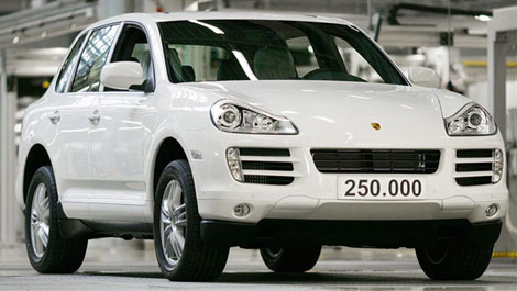 - March 6, 2009 --- Porsche AG today produced the 250,000th Cayenne at its Leipzig plant in Germany. The milestone vehicle is a white, 6-cylinder model with a diesel engine that will be delivered to a customer in Austria. The Cayenne, a sporty SUV, has been produced in Leipzig since 2002.