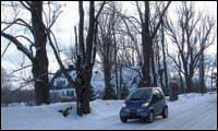 Les démarrages par grand froid étant concluants, passons à l'autre plaisir de l'hiver : la neige. Chaussée de quatre pneus d'hiver, notre Smart s'acquitte étonnamment bien de cette mission. Le moteur placé entre les roues arrière facilite les démarrages sur chaussée glissante (souvenez-vous des premières Volkswagen) et la présence des « anges gardiens » électroniques (antipatinage, antiblocage et antidérapage) permet presque à la voiture de se moquer de l'hiver. Précisons qu'aucune autre voiture dans cette