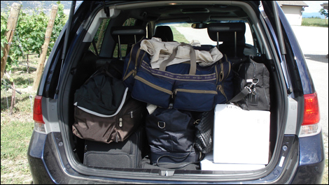| | Nous avions peine à croire qu'il y avait tous cet espace de rangement pour nos sacs et les caisses de vin. |