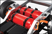 of the advancements with the new FCX center around Honda's V Flow fuel cell platform. The cells are stacked vertically in the center tunnel and arranged in a vertebral layout (think of it as though the stacks are your backbones if you are lying on your back) for higher efficiency packaging as well as more efficient management of gas flow (from top to bottom). Another breakthrough was in the realm of storage, and with a newly developed higher absorption material in the tanks which allowed Honda to double storage capacity. The FCX can achieve a real-world driving range of over 500 km (350 miles).