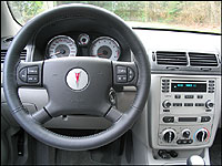 Mais pour être en mesure de dire que le maniement est remarquable, il faut au préalable pousser la voiture avec une force suffisante. Pas de problème là non plus, puisque la Pursuit SE est munie d'un I-4 Ecotec de 2,2 litres à 16 soupapes et à DACT qui développe 145 chevaux à 5400 rpm et un couple de 155 lb-pi à 4000 rpm. Il s'agit d'un moteur de base qui bataille pour le premier rang dans le segment des voitures compactes. Je n'ai pu contrôler la puissance du moteur de façon manuelle, étant donné que ma Pursuit était équipée de la transmission automatique à quatre vitesses (en option). Cette dernière s'est néanmoins montrée douce et communicative. Si tout va bien, je mettrai la main sur un exemplaire doté de la manuelle à cinq vitesses dans un avenir rapproché; je pourrai donc vous en dire plus à ce moment.