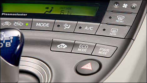 Driver InvolvementRather than just put a display on the dash that tells occupants what the Synergy Drive system is doing, Toyota has chosen to involve the driver by providing three modes of operation.