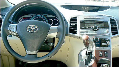 L'écran d'affichage multifonction sert d'horloge, d'ordinateur de voyage et d'interface de climatisation. Quand on engage la marche arrière, il affiche également l'image de la caméra de recul. D'autre part, les compartiments de rangement sont nombreux et l'énorme console centrale peut être réorganisée de différentes façons. Elle comprend des porte-gobelets illuminés, une prise de courant cachée et même un réceptacle intégré pour cellulaire ou lecteur MP3. S'il existait un trophée pour la meilleure console centrale sur le marché, le Toyota Venza le remporterait probablement.