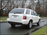 Acura doesn't tout the MDX as a heavy-duty off-roader, but rather term it a mid-level off-road vehicle. That being said, Acura's SUV does have bragging rights when it comes to hill climbing abilities. It is capable of climbing an extremely steep 31-degree grade (60-percent slope) with two-passengers on board. The MDX will also move from rest up a 28-degree (53-percent slope) dirt grade. On a split grade (different amounts of traction at each wheel), Acura declares that the VTM-4 automatically provides sufficient rear-wheel torque to help the vehicle climb a steep, slippery driveway to enter a garage. According to Acura the motion is smooth and secure-feeling and free of the jerkiness that's common with brake-based traction- and stability-control systems.
