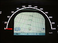 | The GPS-based navigation system resides in the centre of the gauge cluster tucked neatly into the arc of the speedometer. (Photo: Rob Rothwell, Canadian Auto Press) |
