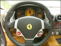 I've left the, perhaps, most contentious aspect of driving the F430 to the end. The one I drove, just like, I am told, about 75 percent of the F430s ordered, was equipped with the F1 gearbox that features electro-hydraulic clutch (read, no clutch pedal) and paddle shifters on the steering wheel (read, no gear shift between the seats). Ferrari's technical people at the event were quick to emphatically point out that this is not a mere automatic transmission like the one found in that pedestrian German sports car; it is a full manual box that requires you to shift it.