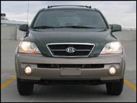 and it is a DOHC 3.5L V6 that puts out 192 hp at 5 500 rpm and 217 lb/ft of torque at 3 000 rpm. There are two transmissions. The LX model offers the choice between a 5-speed manual or a 5-speed automatic transmission with a manual mode called Steptronic. Both EX versions are available only with the 5-speed automatic. The Sorento LX receives a shift-on-the-fly electronically controlled 2-speed transfer case. The EXs get a torque-on-demand all-wheel-drive system also with an electronically controlled 2-speed transfer case. They also benefit from a limited-slip differential. All Sorentos have 4-wheel disk brakes and a 3 500 lb towing capacity.