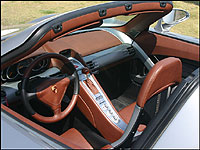 Straddling the GT's sizeable rockers placed me snug in the centre of its encapsulating driver's seat, ignition switch at my left hand and ultra-short-throw shift lever at my right. The rich brown leather, jewel-like aluminum trim and finely detailed floating centre stack place driver and passenger into completely separate "cells" while setting the GT apart from any other Porsche, or any other car for that matter, but some things, such as the instrument cluster layout and three-spoke steering wheel appeared much as in a Boxster or