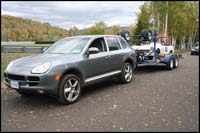 Trailer truck When the time came to attach a trailer to the back of the Cayenne S, I thought I had to lock the differentials to be able to climb over the curb but no, the engine's torque and the four-wheel drive system smoothly handled the job. In Tremblant, I locked one of the differentials to tow my loaded trailer on the slippery hills, just for safety precautions. On the road, the Cayenne S acted as if there wasn't even a trailer attached to it. The vehicle remained stable and never showed any signs of fatigue after climbing long, steep hills. Actually, it was like the hills did not exist. In my mind, the Cayenne S is a cross between a sprinter and a long-distance runner.  | | 2006 Porsche Cayenne S (Photo: Amyot Bachand, Auto123.com) | However, such an athlete needs a lot of fluid to keep it energized. My average fuel consumption rating was an incredible 21.2 L/100 km.