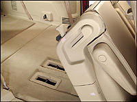 Where the Freestar truly eclipses all competitors is in headrests. While this may sound like a minor point, Ford's unique design makes it so there's no need to remove the trio of restraints when tumbling the seat into the floor well. This means that there aren't any loose items tucked into a woven side pocket - the Odyssey's method - or more often than not, scooting around on the floor under the seats.