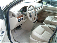 I wasn't disappointed. After taking in the elegant chrome bezels surrounding the full set of gauges in the European'ish dash design and then setting up the multi-adjustable power seat, tilt and telescopic steering wheel, power mirrors and power adjustable pedals for an ultra-comfortable driving position, a twist of the key brought the engine to life. The 4.2 quickly settled to a smooth and relatively quiet idle as I spent a few minutes acquainting myself with the Freestar's features and controls. Everything was in reach and logically laid-out.