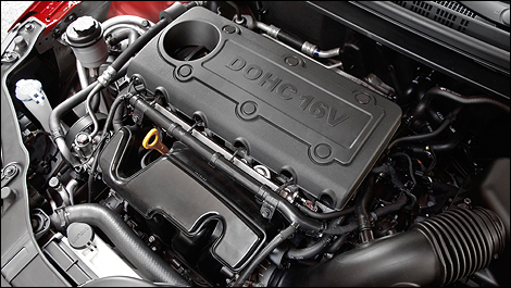 Honda Civic Coupe, 2.0L Ford Focus Coupe or 2.2L Chevrolet Cobalt Coupe, Forte Koup EX is driven by a 2.0-liter DOHC four-cylinder engine, producing 156 horsepower and 144 pound-feet of torque that features Continuously Variable Valve Timing (CVVT) and multi-port electronic fuel injection, both of which provide for greater performance and fuel economy. The SX features an upgraded 2.4-liter inline four-cylinder engine, with dual CVVT, which delivers 173 horsepower and 168 pound-feet of torque. Expanding upon the dynamic look and feel, Forte Koup's engine hums powerfully courtesy of the dual exhaust outlets outfitted on both EX and SXtrims.