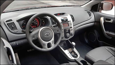 Like the Forte sedan, two transmission options are available for both 2010 Forte Koup models: a standard five-speed manual transmission or an optional electronically controlled four-speed automatic transmission (EX models). The SX model features a standard six-speed manual transmission and an optional five-speed automatic transmission with Steptronic.