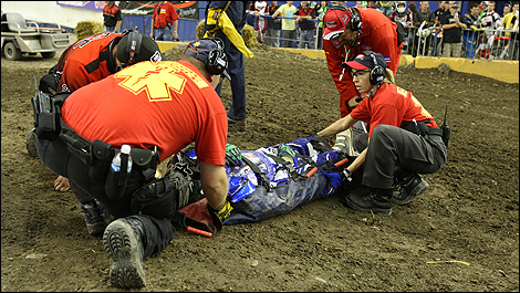 Pour en savoir plus sur la condition de Blair Morgan, cliquez ici. Le pilote de motocross Blair Morgan de la Saskatchewan a été sérieusement blessé samedi dernier quand il participait aux essais libres du Supercross de Montréal au stade olympique. Son épouse nous donne une mise à jour de la condition de son époux. « Comme vous le savez, Blair a été victime d'un accident sérieux lors des essais du Supercross, » écrit-elle dans un message. « Il a été blessé au milieu du dos. L'opération s'est bien déroulée, mais les médecins ont découvert que sous la force de l'impact, les vertèbres avaient partiellement sectionné la moelle épinière, ce qui paralyse ses membres inférieurs. » « Blair a été débranché du respirateur après l'opération et son état s'améliore progressivement. Lundi le 22 septembre, il a quitté les soins intensifs pour le département d'orthopédie. Des arrangements sont pris pour le transférer près de chez lui. » « Il se repose et place toutes ses énergies dans sa rééducation et à travailler de près avec les physiothérapistes. Comme vous le savez, Blair est un battant, et cet incident ne l'immobilisera pas très longtemps. » « Merci de votre soutien, et si vous désirez envoyer vos voeux de prompt rétablissement à Blair, envoyez-les à l'adresse : blairmorganrecovery@gmail.com ».Photos : Philippe Champoux - Auto123.com