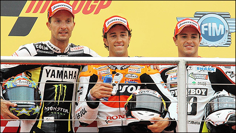 | Edwards, Dovizioso et De Puniet sur le podium à Donington. |