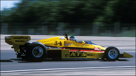 | La dernière écurie de F1 à avoir couru avec une licence américaine est Penske. Sur cette photo, on voit Jean-Pierre Jarier aux commandes de la Penske-Ford PC4 à Dijon-Prenois en 1977. |