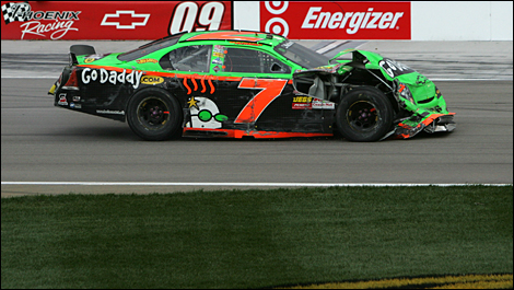 Danica Patrick n’a pour sa part pas rallié l’arrivée, victime d’une mauvaise décision de Michael McDowell qui, croyant faire place à Patrick, l’a plutôt coupé, rendant l’impact inévitable. « C’était ma faute à 100 pour cent. J’essayais de lui donner l’extérieur », a expliqué McDowell.