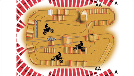 Le tracé de Supercross de 750 mètres (2 500 pieds) comporte 15 virages dont deux en épingle, une zone de type planche à laver « Rockers », une multitude de sauts, un tunnel et une trappe de sable.
