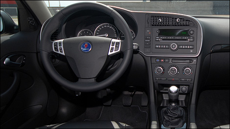 En plus de ne l'offrir qu'en noir, on a retenu l'un des éléments visuels les plus caractéristiques de Saab, soit les jantes à trois branches. Bien que, dans les faits, on en trouve six et qu'on leur ait donné une apparence de titane, la filiation est évidente et, comme la voiture, indique une évolution malgré leurs dimensions de 18 pouces.