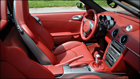 Inside, the overall appearance is more striking. The engraved door sill plates tell you that you're climbing into a limited-edition cockpit. The center console is painted silver, the instrument pod loses its cover, the shifter gets a distinctive design and a numbered plaque is stuck on the glove box lid. Again, most of the stuff you'll find in the RS 60 is on the Boxster S' endless options list. Obvisouly, fit and finish is beyond reproach.