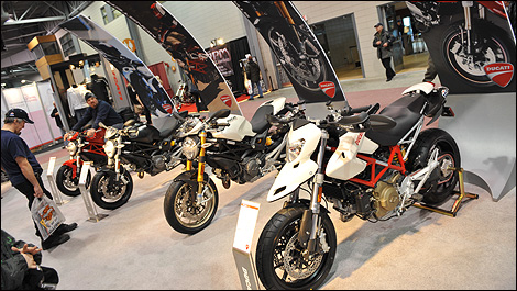 Le succès presque surprenant de ce salon, tenu les 5, 6 et 7 février derniers, laisse présager d'une belle saison 2009, autant pour les spectateurs dont la passion se sentait à leur parler, que pour les professionnels de l'industrie à qui les réactions de la foule permettent de croire en une saison 2009 rentable. Le directeur du salon, M. Roger Saint-Laurent, s'avouait lui aussi un peu surpris des résultats si positifs en moment de ralentissement économique. « Nous avons su attirer 18 441 visiteurs, soit le même nombre que l'année passée. Et tout le monde semblait heureux de retrouver leurs jouets et de planifier leur saison. Les manufacturiers partageaient l'optimisme général, alors que les gros équipementiers sentaient une forte augmentation de l'intérêt de la part des amateurs à mieux équiper leurs machines, quitte à la garder une année de plus et mettre l'argent sur des pièces et accessoires plus évolués. » Après le succès du salon de la moto de Toronto en décembre, et des divers salons dans l'Ouest canadien et à Québec depuis, il reste à confirmer le pronostic positif au Salon de la moto de Montréal, qui aura lieu du 20 au 22 février, au palais des Congrès de Montréal. Nous y serons avec textes et images - c'est un rendez-vous ! Photos : Matthieu Lambert